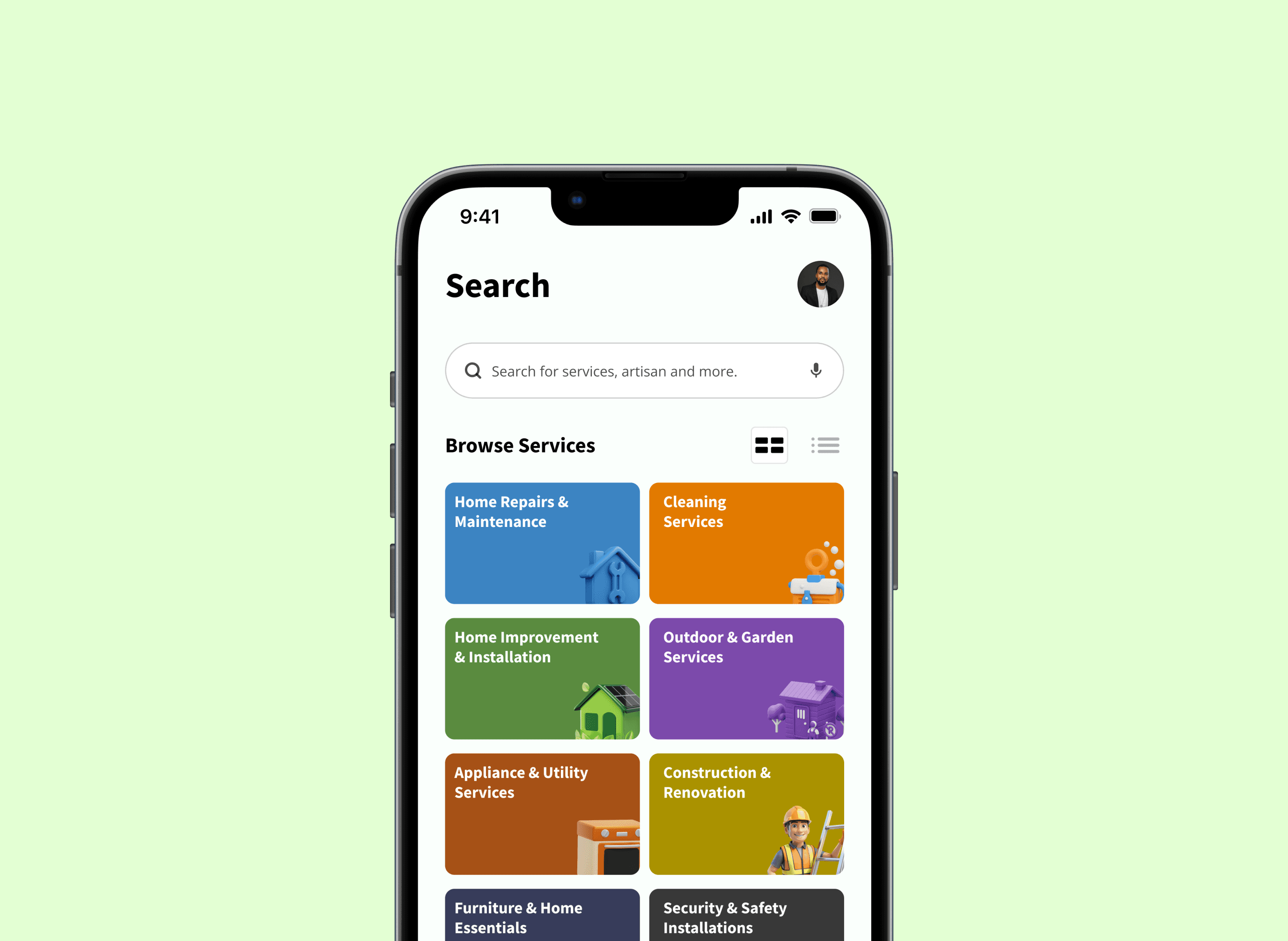 Users can browse through the app and find artisans based on the service categories.