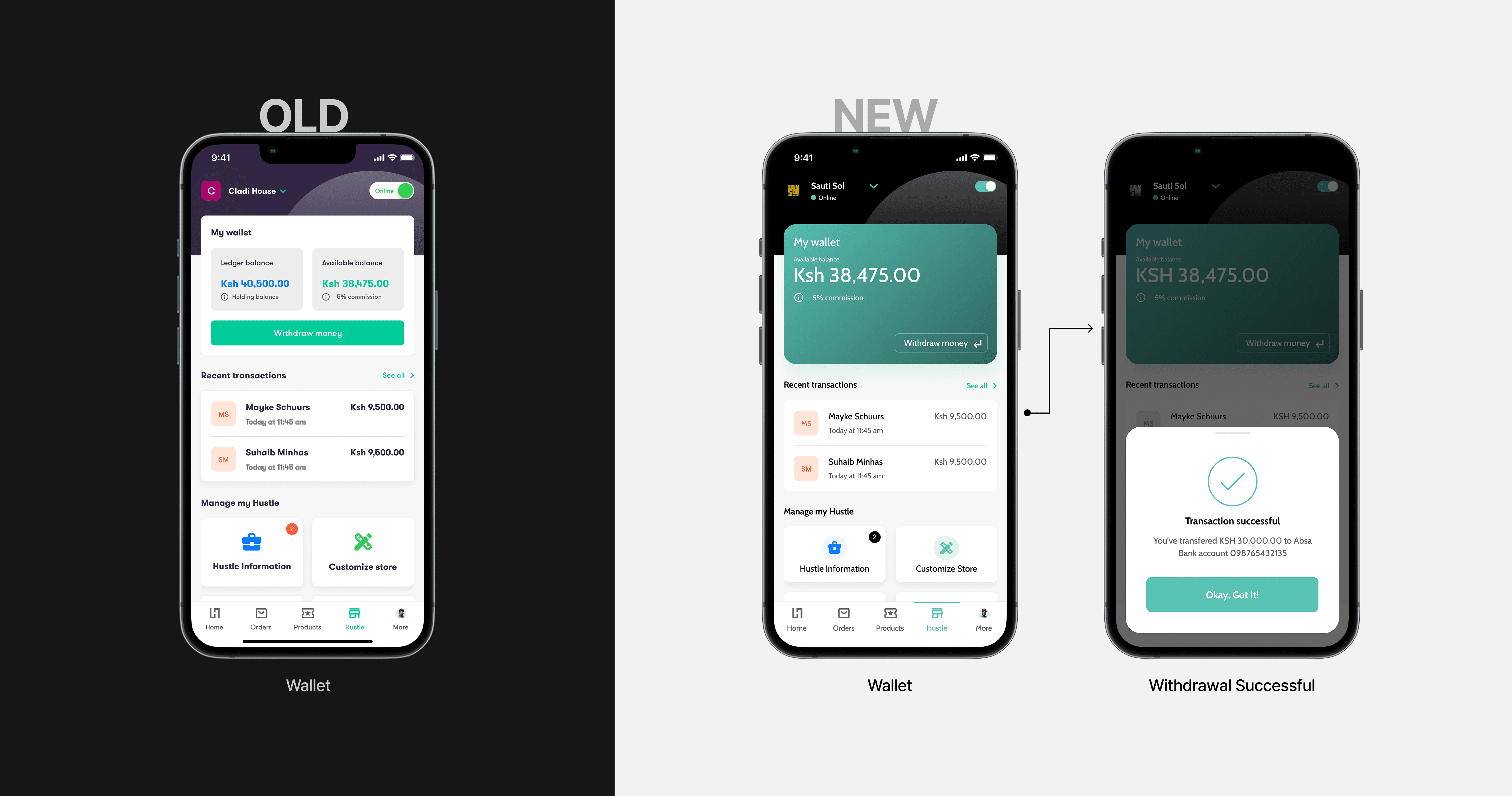 In 2021 after securing seed funding, the product team conferred and reached the decision to start building out features to make Hustle Sasa a product that would be easily used across the African Continent. The work done to achieve this goal was sectioned into two; redesign of some modules on the Mobile App and redesign of the Merchant's Web Storefront and launching a Marketplace.