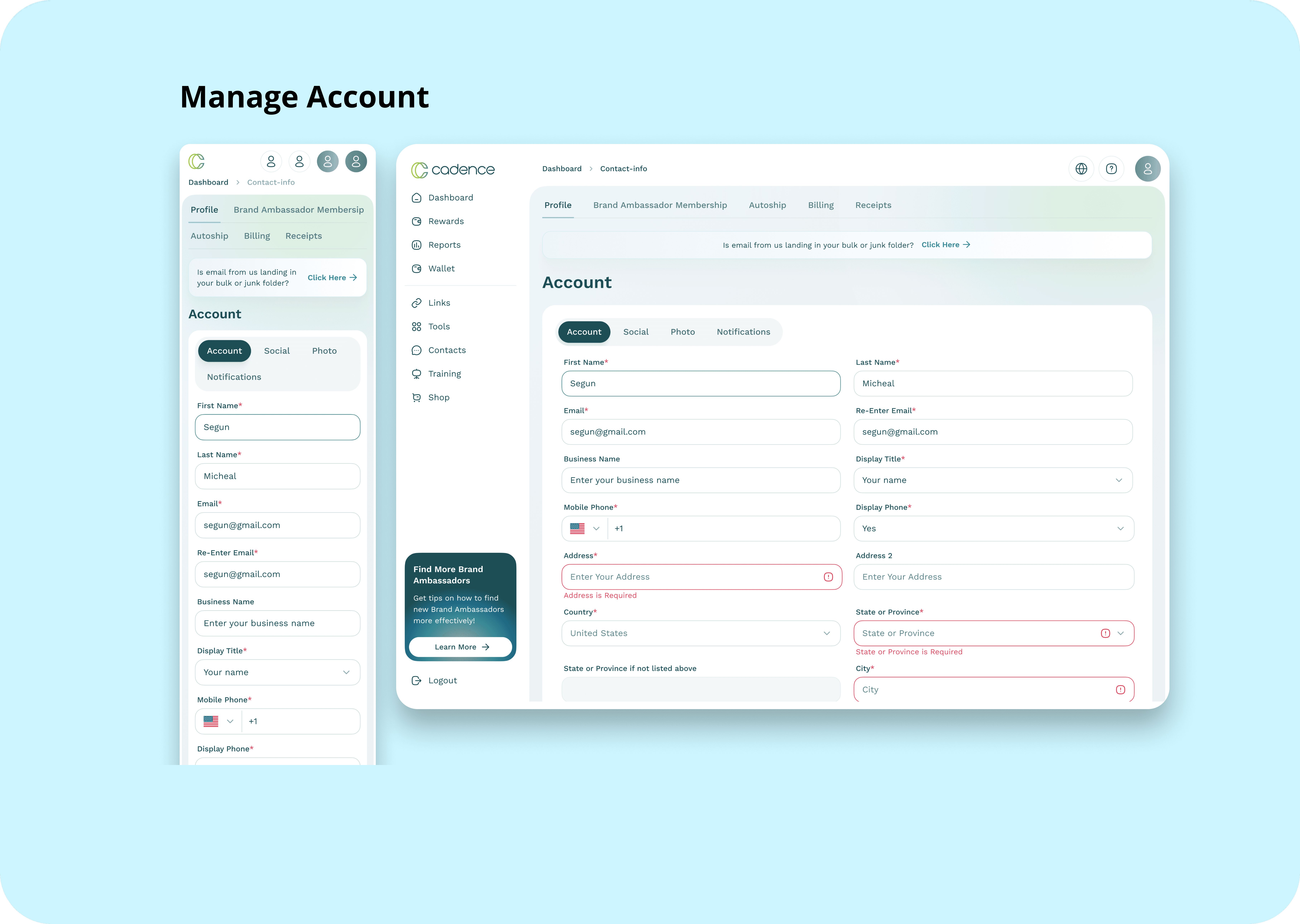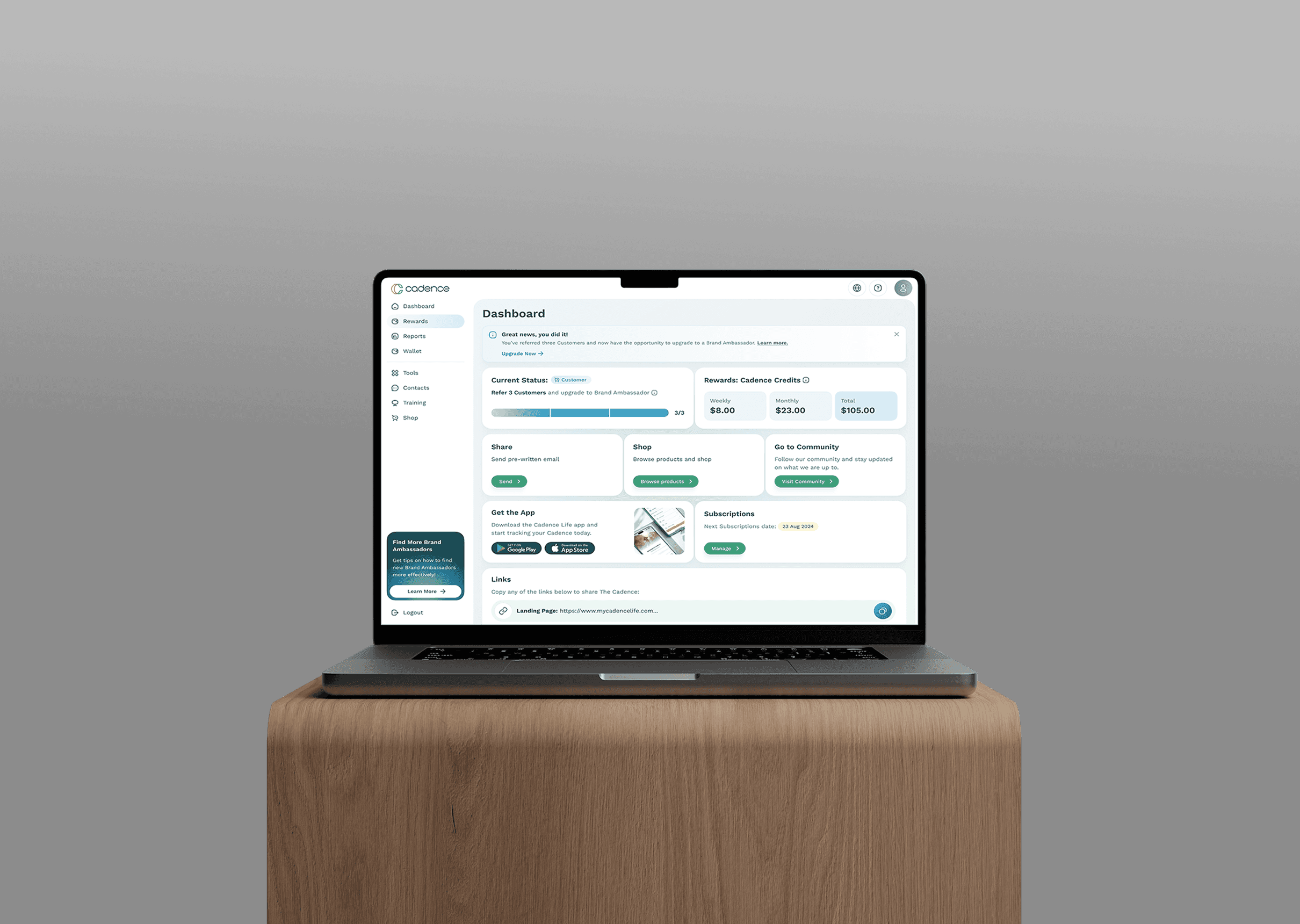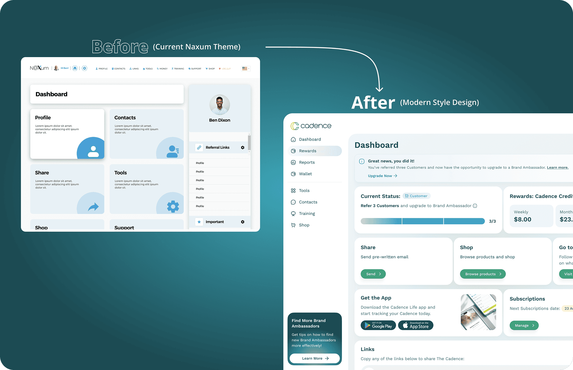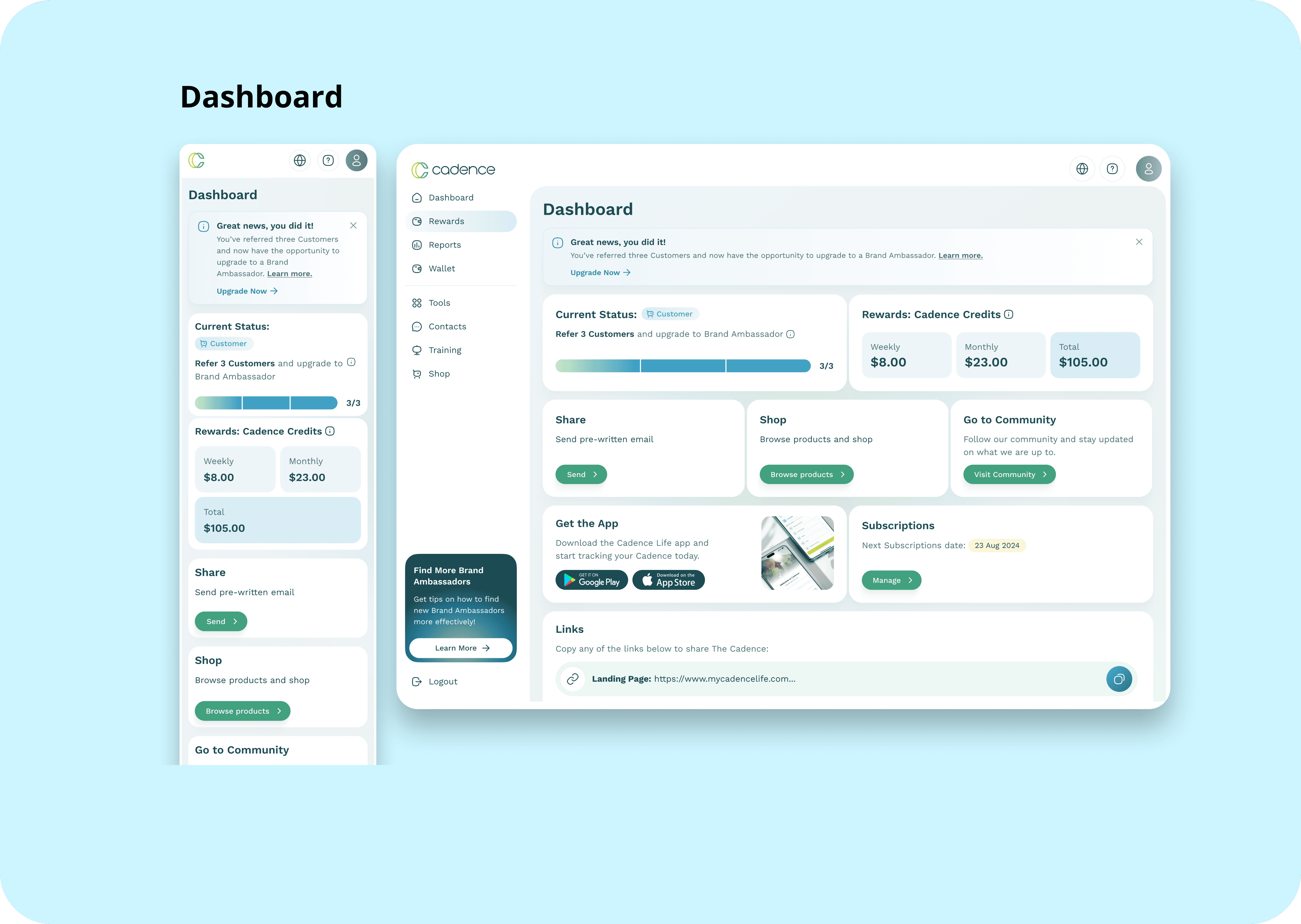 Cadence life sciences is a US-Based Company focused on delivering products for enhancing an healthy lifestyle. As one of Naxum's Senior UI Designers, I was brought in to join hands with Arounda team to redesign the digital experience of the Referral Application. The Cadence Referral Application is a SaaS web app that will serve as a referral tool for cadence affiliates in tracking commissions, managing products and selling to their customers.