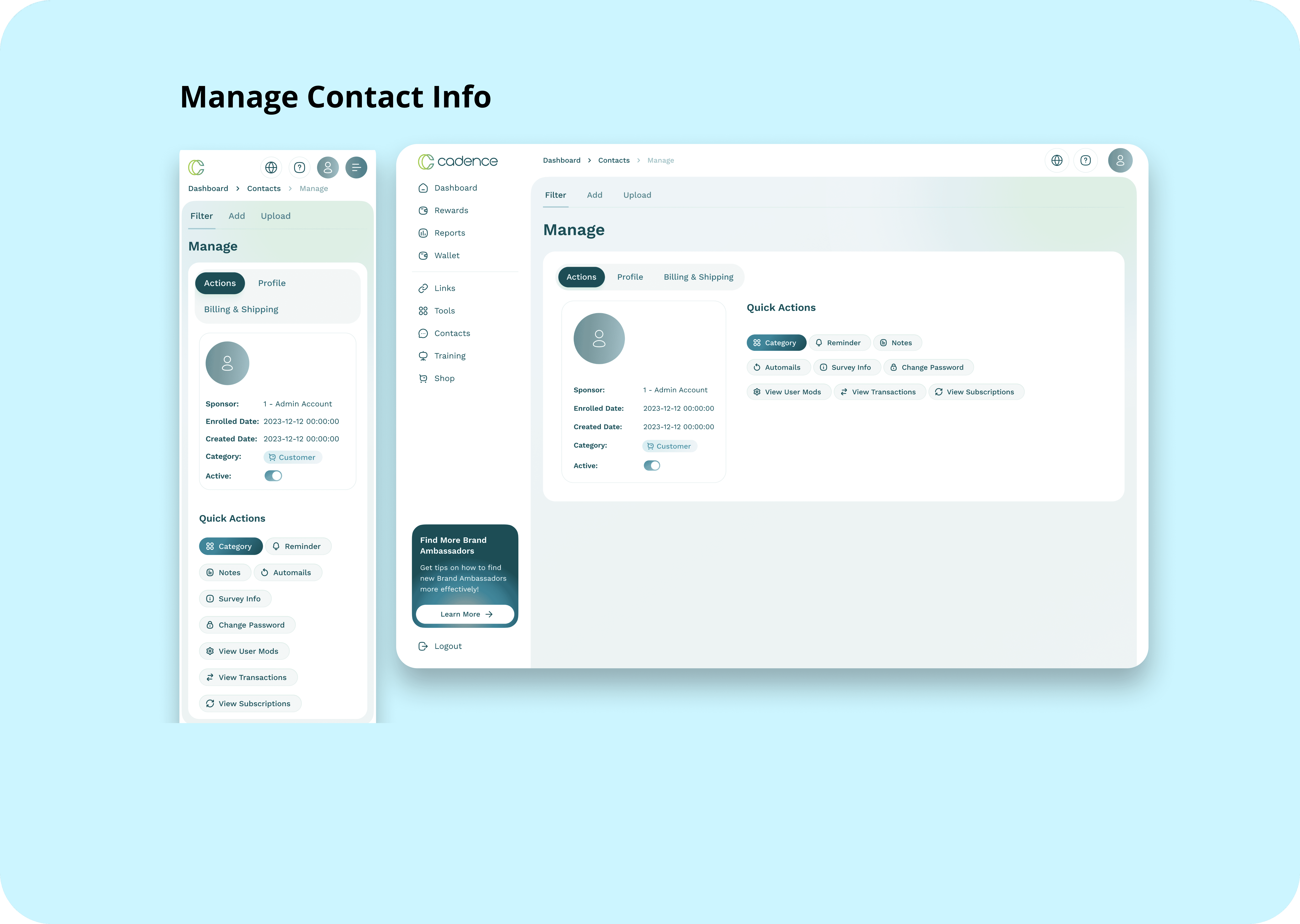 Users of the existing Cadence platform struggled with high cognitive load, unclear navigation, and sub-optimal mobile responsiveness, which are factors that impeded adoption and limited the tool’s effectiveness in high-stakes referral marketing environments. The goal was to make the platform more usable, efficient, and visually aligned to its premium referral marketing identity in the healthy lifestyle sector.
