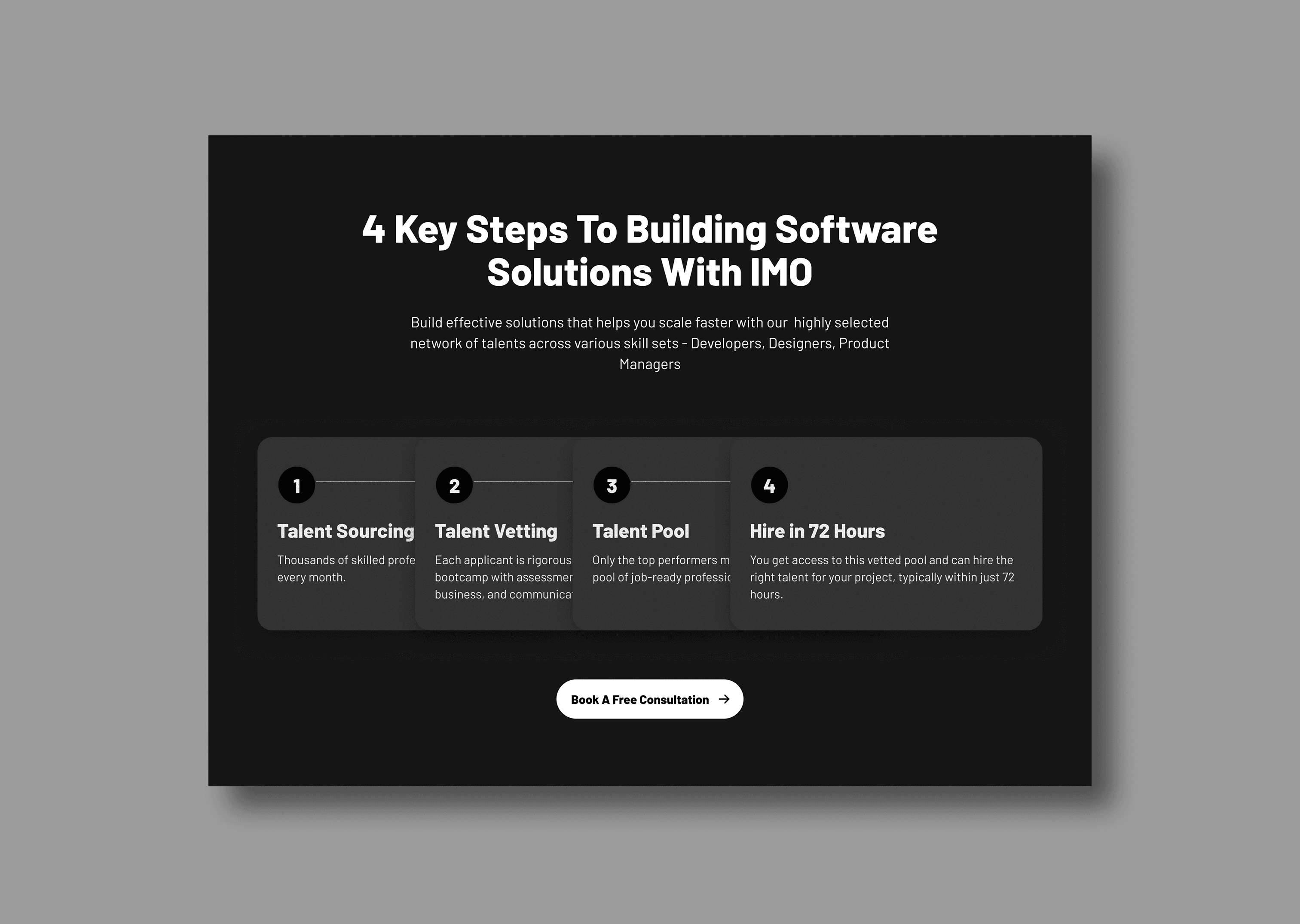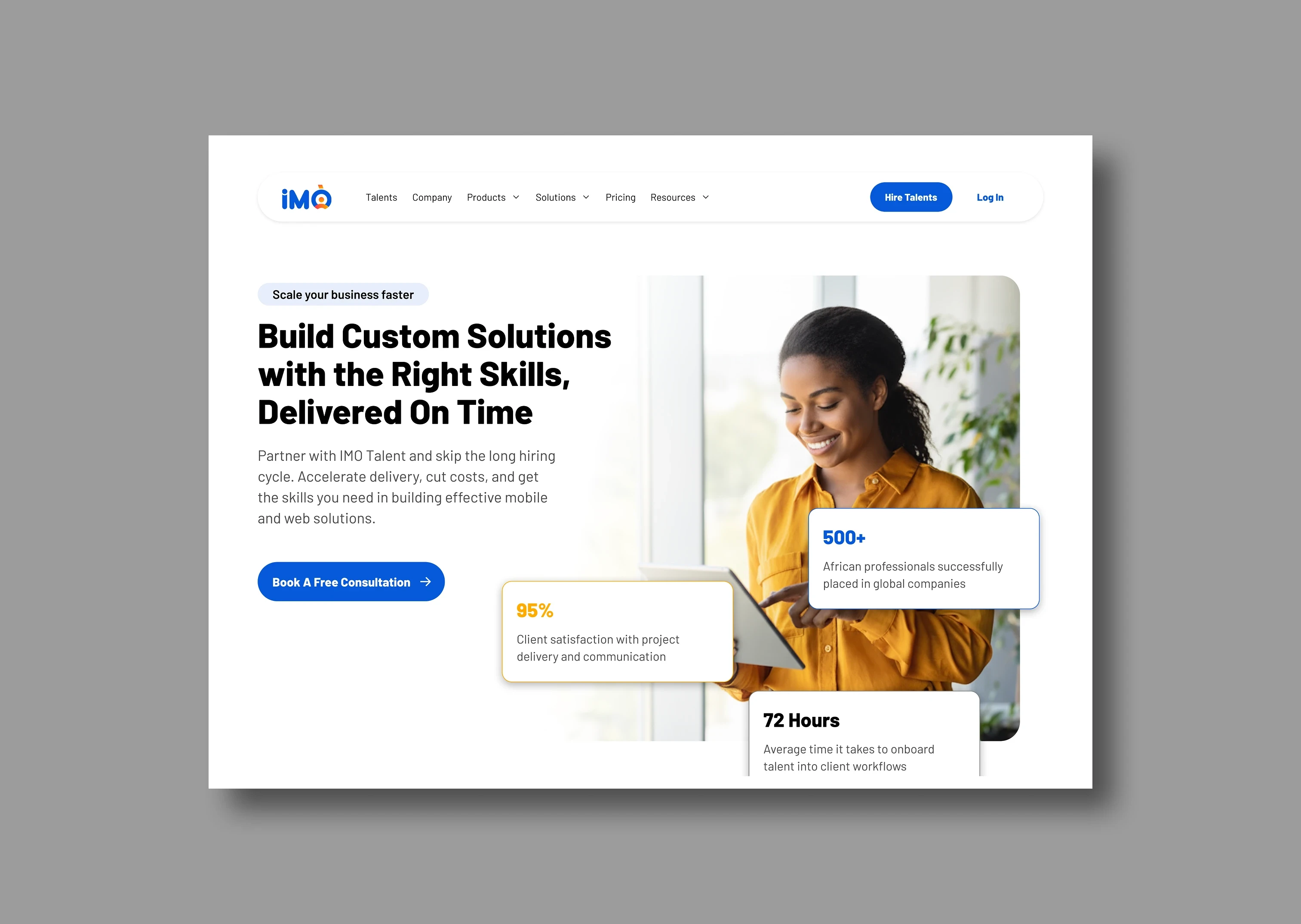 IMO Talent is a talent-matching platform that connects skilled African professionals with companies seeking to hire talents such as developers, product designers, data analysts and other technical roles. As Product Designer, I was brought in to enhance the user experience of some of their websites such as Skill pages, Project Page, Landing Page journey optimising both the employer and talent sides of the platform.